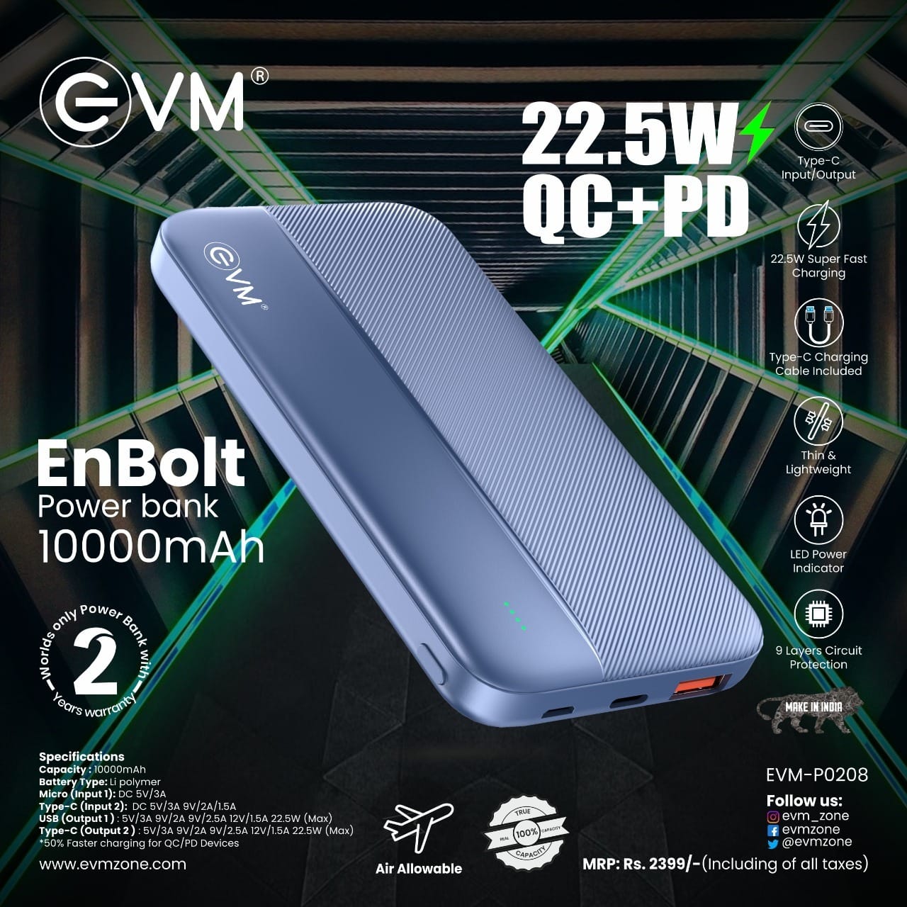 All-day long we use different types of gadgets including laptops, phones, tablets, etc. However, there is one thing that is common about these devices, they all need to be charged from time-to-time. Especially mobile phones have become a device that we can't live without. Power banks are a gadget that you just can't miss out on. EVM Encore+ is one such power bank that is promising and very good in performance. A great source of power to your lifeline. Own this brilliant and high-performance power bank or gift this to your colleagues and friends.