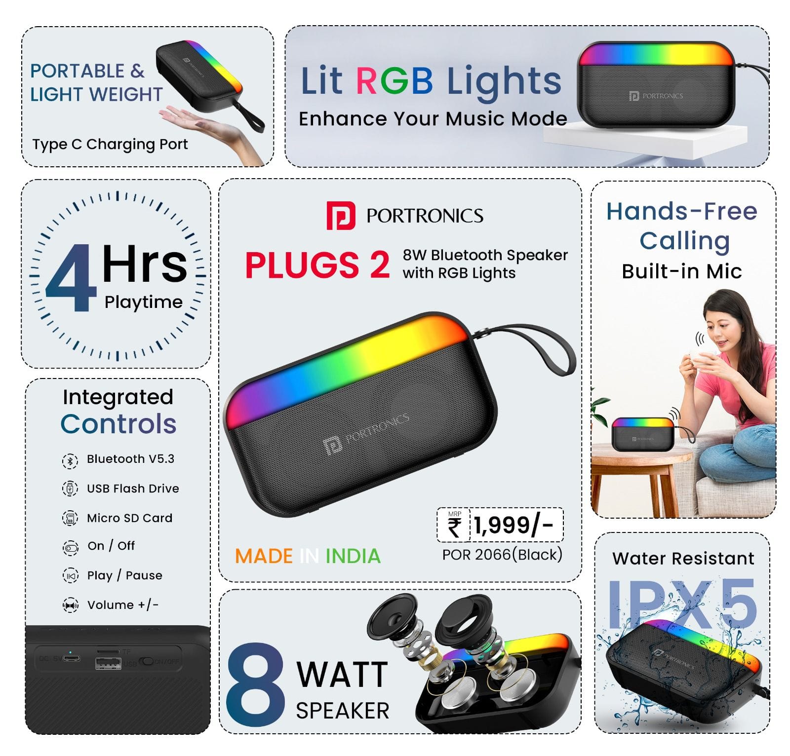 Easy & Convenient to Carry Splash Proof with Durable Braided Material. Universal Compatibility: Mobile, Laptop / PC, iPad, Media Players Multi-Connectivity Modes: FM, Aux, USB, Bluetooth & TF card. In-Built Mic for Handsfree Calling